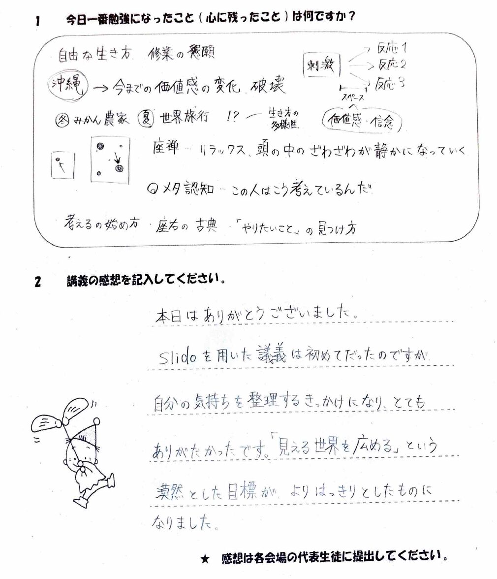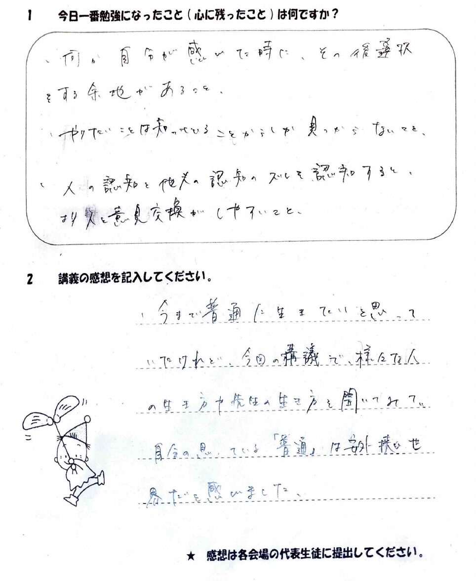 今週、生徒からの感想が40枚ほど届きまして、内容の濃さに驚きました。